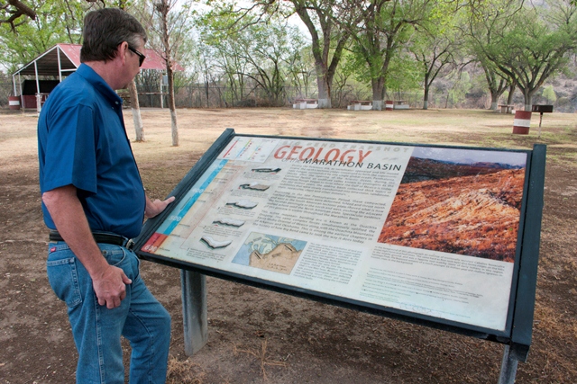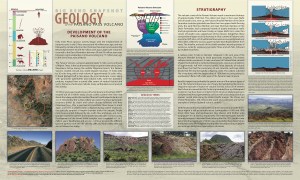 The Big Bend Snapshot of History exhibit designed for U.S. Highway 90, interprets this complex history of the volcano in terms accessible to travelers of all demographics, and will perhaps slow people down so they learn more about this country. The 4×5 foot exhibit combines expert scientific information adapted for a general audience, diagrams, maps, and photographs of sites visible from the road while driving through the extinct volcano. It is also an outline for a mini geological field trip of the area. Some of the Brewster County interpretive sites are also great candidates for GSA EarthCache sites.