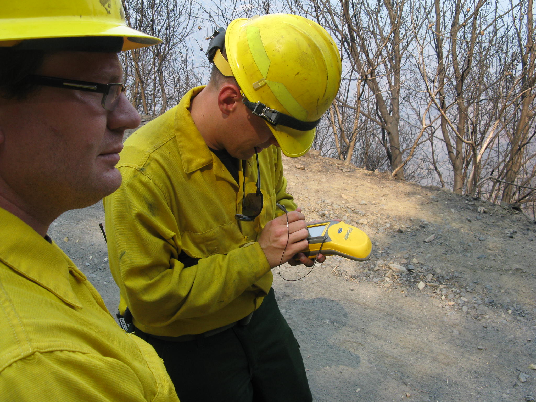 During the Stanislaus Complex Fire, I helped make our soil burn severity map using the technology of the time—the sharp-eyed, trained observer.  Armed with topographic maps and a felt-tipped maker, you took a seat in a helicopter that would give you a clear view.  It was also a good thing if you were largely immune to motion sickness because the next few hours would be spent circling around and around over the fire.  As you passed over the burned area, you would draw large polygons and assign a burn intensity based on how the vegetation looked from about a thousand feet up. Later, spot checking of these polygons by soil scientists would modify the initial polygon boundaries or the assigned intensity rating.