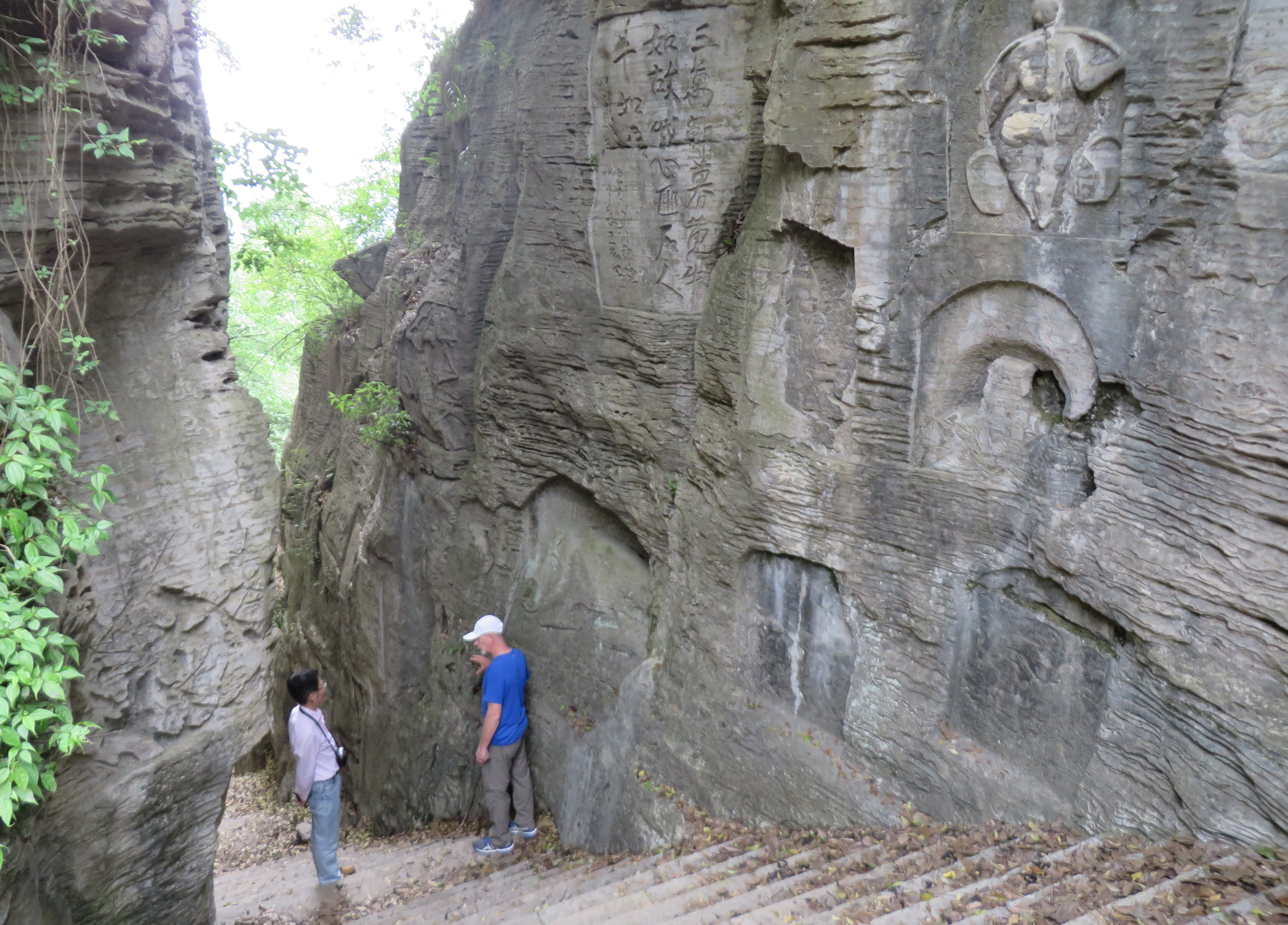 From Shanghai we flew into Wuhan, Hubei province in central China, met by my host Dr. Guangming Hu who had been a visiting scholar in my department in 2013. Soon we were in a van heading to the Three Gorges Dam. We traveled through a landscape of rice paddies, rivers and lakes in a green and watery mosaic. The terrain along the Yangtze River is stunningly beautiful with steep slopes, limestone cliffs and villages with terraced fields. We toured the dam and lock system, then headed down the river gorge to see some geology.