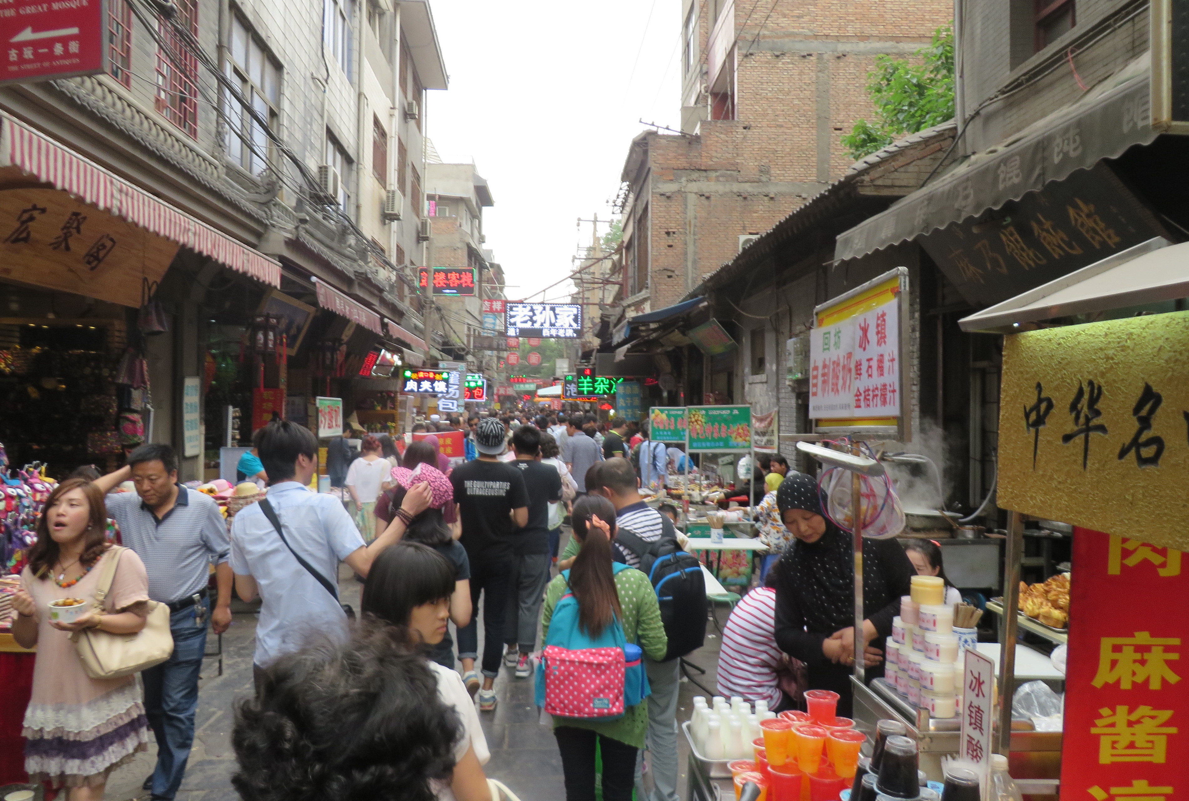 A popular attraction a bustling street in the Muslim quarter, loaded with vendors from the Hui ethnic group selling all kinds of food, and other things.