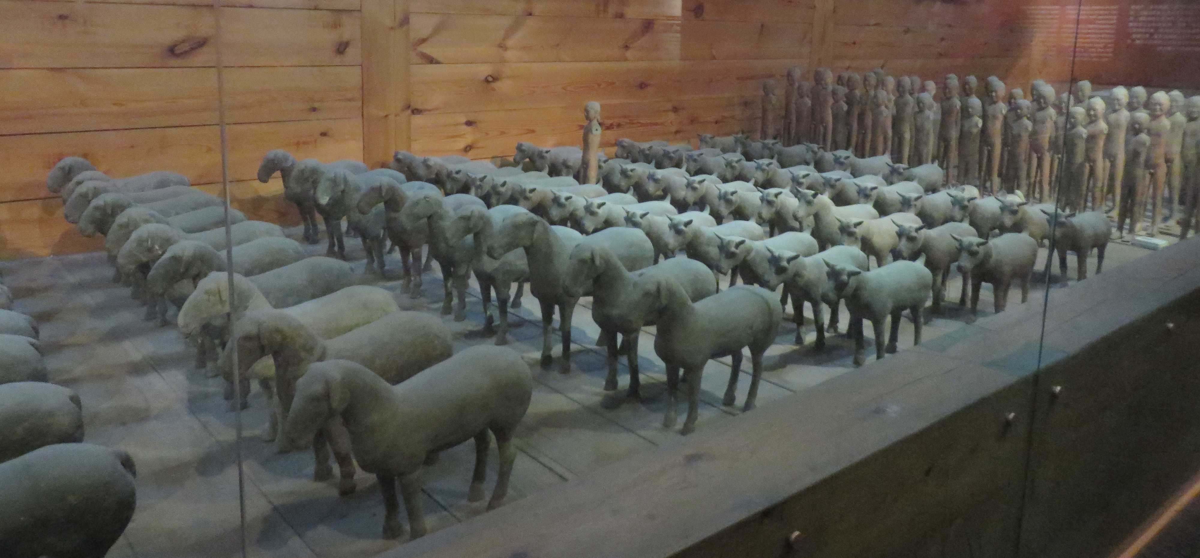 Another highlight was our visit to the Tomb of Han Emperor Jingdi (Han Yangling). An underground museum path with some glass floors led us through and over this ancient burial site where they have excavated “small warriors”, pottery animals, and many artifacts. These are reminiscent of the Terra Cotta warriors, but are scaled down (much like large dolls ~ 30 cm high), and are not as detailed. However, it is still an amazing glimpse of the culture preserved in a royal mausoleum that is much less crowded with visitors.