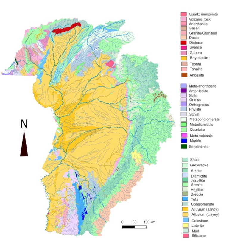 Because it’s so large, the northern Pantanal actually has a slightly different climate from the southern end; the north receives more total precipitation and a longer dry season than the south. In both regions, vegetation in the highlands further enhances chemical and physical breakdown of rock due to roots wedging their way into tiny cracks and generating potent organic acids. The localized rock outcrops and climate gradient make the Pantanal an ideal natural setting to evaluate how distinct lithologies, weathering effects, and topography influence sediment composition and transport. I expect that sediment composition is more affected by provenance—the type of rock it originally was— than by a dominant weathering intensity.
