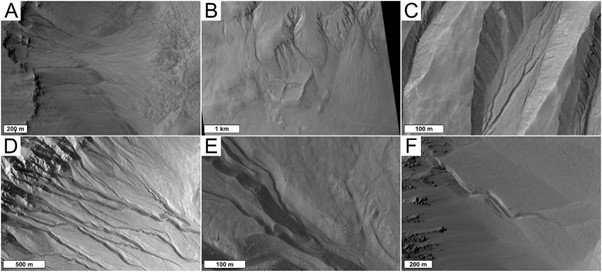Mars’ surface is a desolate expanse, devoid of liquid water, with temperatures plunging to as low as –225 °F. Yet tantalizing surface features—gullies, alluvial fans, and riverbed-like formations—hint at water on the planet in the distant past (Fig. 2). This raises questions about the “Water Chapter”: When did it occur, how did it shape the landscape, and to what extent? The challenge lies in unraveling the mysteries of the planet’s ancient water history when these sediment transport processes are dormant on present-day Mars.
