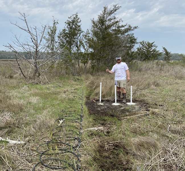 We set out in August of 2020 to attempt to characterize these hydrogeologic nuances using a variety of techniques, some conventional, and some more novel in this environment. One more novel method was the use of electrical resistivity tomography (ERT) to create a timeseries spanning the transition from maritime forest to saltmarsh. This was able to map the mixing zones of groundwater within the sediment and identify sediment types that allowed freshwaters from the island to penetrate the muddy saltmarsh platform. To assist with the interpretation of the ERT, five vibracores were retrieved adjacent to survey transects and analyzed at 10- and 15-cm intervals for sediment characteristics including laser grain size analysis. A timeseries record of water table elevation and salinity was collected along a transect spanning the entire ecotone shift from low marsh to forest. Finally, ensemble empirical mode decomposition was used to identify hydrogeologic drivers such as tides and precipitation from the complex water table signal, a novel use of this method which had been otherwise used for surface waters.