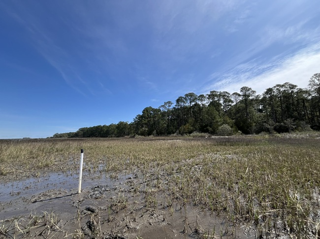 The variety of ecotones is representative of the island’s complex hydrogeology, where pluvial freshwater from the island blends with brackish waters of Dunn sound and saline waters of Hog Inlet and Atlantic Ocean. This mixing of groundwaters occurs within the saltmarsh sediment package, where surface waters slowly percolate through near-impervious surficial mud, while groundwaters exchange rapidly beneath using highly permeable sand deposits as conduits. This “subterranean estuary,” as it has been dubbed by seminal researchers, has garnered increased attention in recent decades for its contribution of nutrients to the coastal ocean and enrichment of coastal ecological productivity. While the biogeochemical interactions here have become well understood in these areas, there is still much to learn about the variability in physical processes controlling the export of these nutrient rich porewaters.
