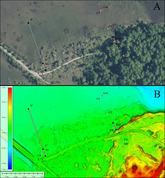 Despite the surficial transformation of these landscapes, much of the underlying geology has remained undisturbed. The mainland of wave-dominated barrier islands such as Waties Island is composed of fine, primarily quartz sand, which extends to the modern-day dune and beach complex. Toward the backside of the island, the geology becomes complex. Coastal processes such as overwashing and inlet dynamics have layered large fans of this quartz sand into an otherwise muddy marsh environment. The sporadic nature of these events has created a nonhomogenous sedimentary package along the backside of the island. These different sediments, and specifically the difference in sediment porosity, has generated a mosaic of habitats along the transition from maritime forest to saltmarsh. Stands of Juniperus virginiana and Quercus virginaia rise out of the marsh grasses atop small mounds of sandy sediment. Adjacent to these small islands of trees, high-salinity saltpans support Salicornia virginica, and brackish depressions in the marsh platform abound with Juncus roemaria and invasive Phragmites australis.